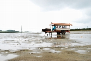これは、西表島から由布島という島へ運んでくれる水牛車です。