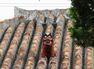沖縄では、普通の家でも屋根や門にシーサーがついていることがあります。