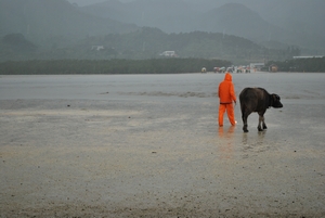 水牛と人間の絆の微笑ましさに温かい気持ちになりながら、今度は晴れた日に