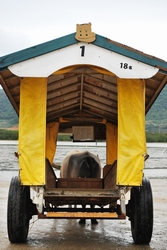 これは、西表島から由布島という島へ運んでくれる水牛車です。