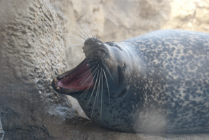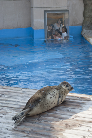この小窓の右側にアザラシがいれば、こんなにアップで観察できます。